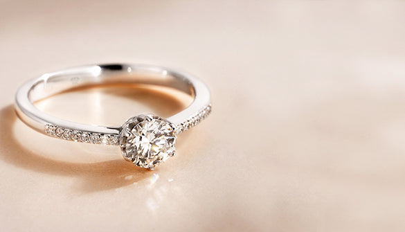 Achlys - 2 Tone Solitaire With a Hidden Halo This setting features a contemporary spin on the traditional solitaire with a flair. With a half-rounded mounting, four delicate claw...